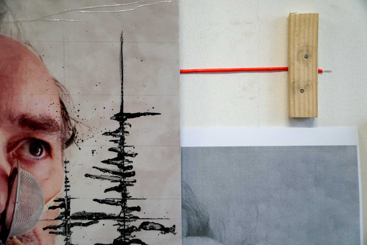 Les germes des masques sont arrivés dans cette pénurie d'invention, dans cet enferment intérieur, dans cette mise à résidence, enfermé dans le silence du monde humain. Bien plus que n'importe quelle revendication politique, ils ont été des signes de bonnes santé, la création d'un personnage, chevelu, hirsute, effrayé, halluciné, clown, portant sur lui ce que les mots et les gestes imposaient à tous. Des barrières, des protections, des frontières, des rites chamaniques. Une herbe à brûler pour se protéger. Une pince pour arracher une mauvaise tumeur. Une racine pour retrouver les siennes. Un filtre à air pour expirer un air plus pur. Toutes ces tentatives de survie, enregistrées durant une année, constituent deux cent autoportraits, symptômes endémiques, de cette inutilité ressentie dont nous avons été désigné. Artiste, nous ne sommes jamais devenus adultes, sans doute, heureusement, mais non plus que rarement acceptés, et toujours, désignés comme faibles, infantilisés, improductifs : « Cherche un vrai travail ! » Plutôt mourir.